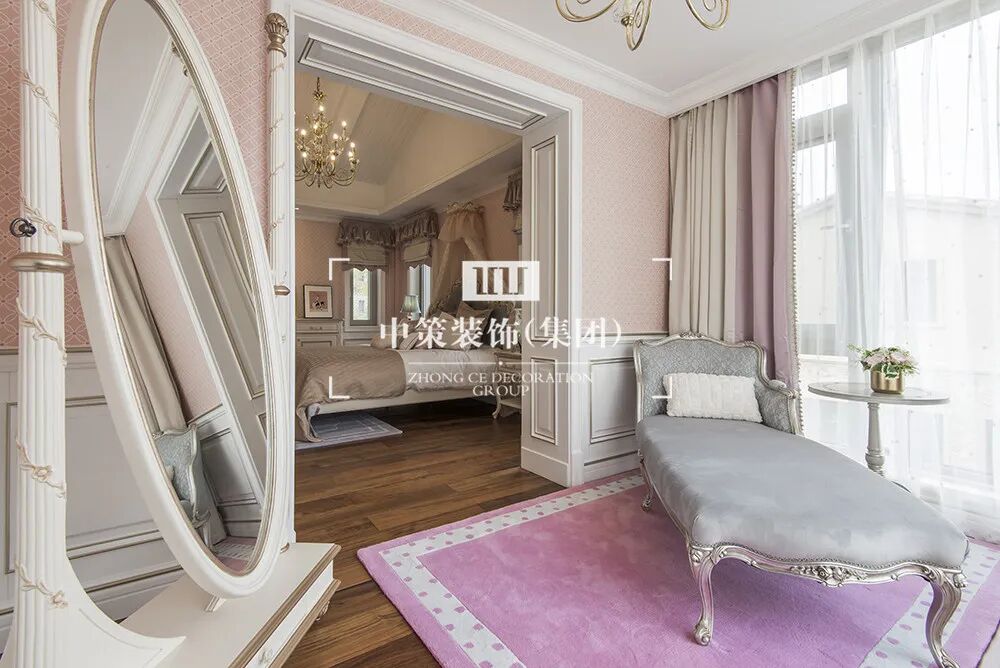 粉色的床幔、椭圆的穿衣镜