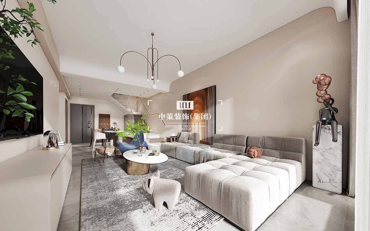 中策设计—汇都国际跃层122m²现代奶油风